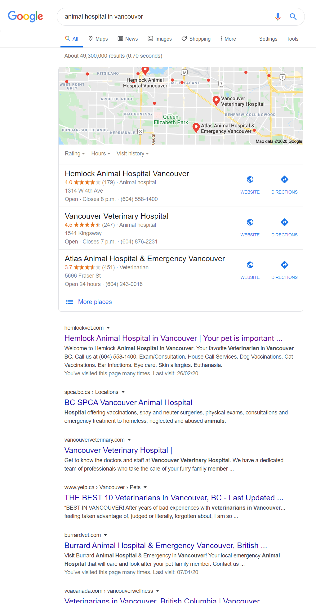 "Animal Hospital Vancouver" - #1 on Google Search and Maps
